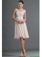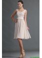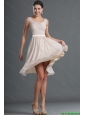 Customized Short Ruching and Belt Prom Dresses in Champagne