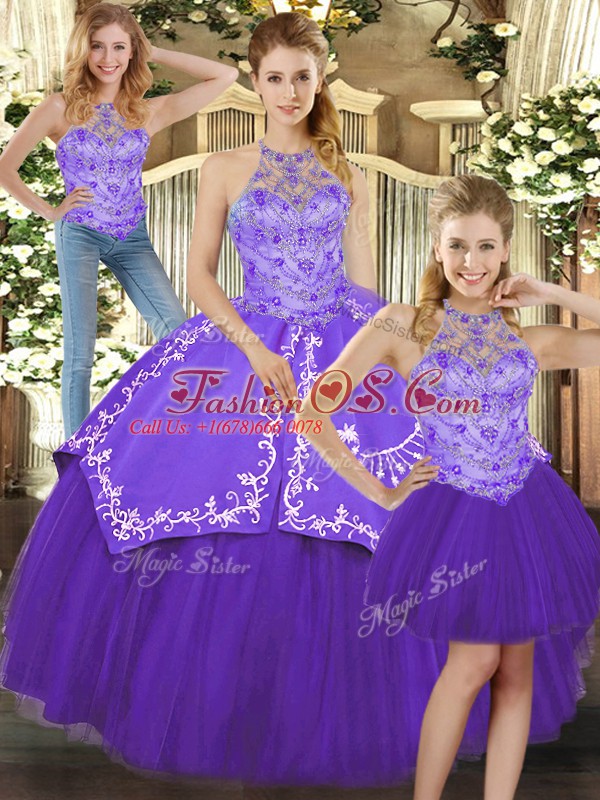 Customized Sleeveless Beading and Embroidery Lace Up Sweet 16 Dresses