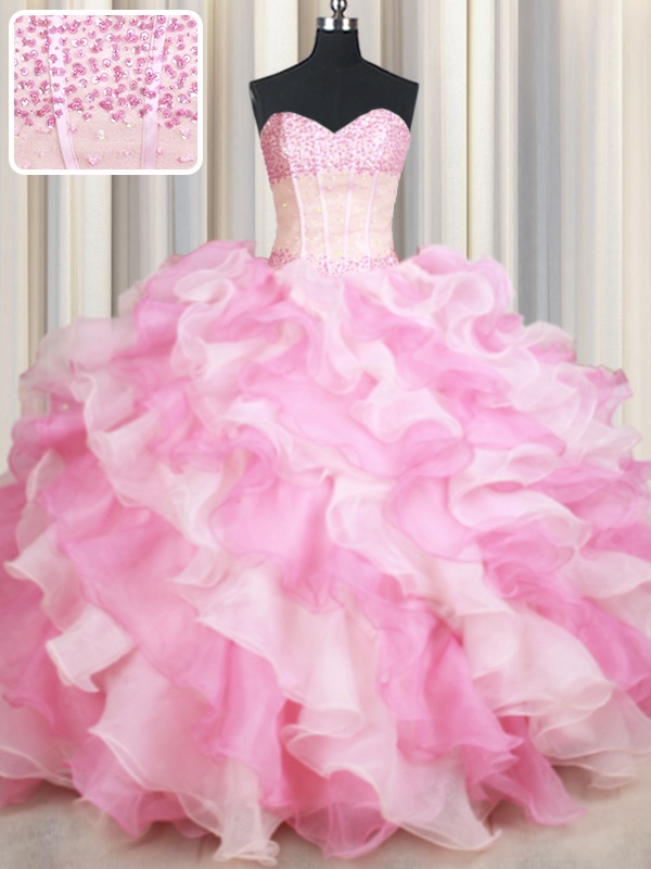 Home >  Quinceanera Dresses >  Cheap Quinceanera Dresses > Customized Sleeveless Floor Length Beading and Ruffles Lace Up Sweet 16 Quinceanera Dress with Pink And White