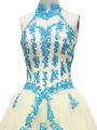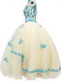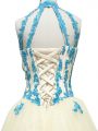 Customized Sleeveless Lace Up Floor Length Lace and Appliques Ball Gown Prom Dress