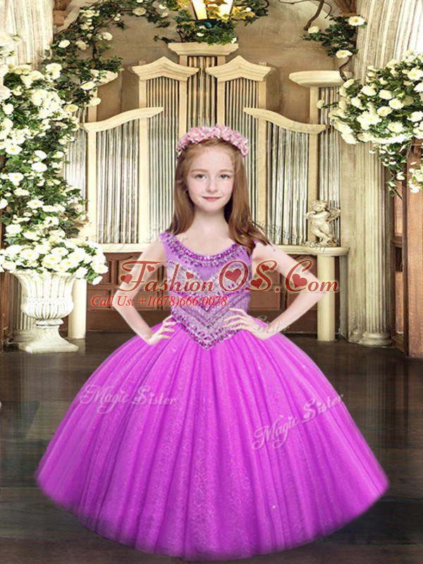 Customized Sleeveless Tulle Floor Length Lace Up Child Pageant Dress in Lilac with Beading