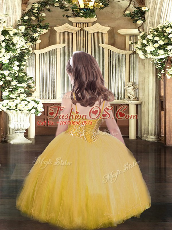 Customized Spaghetti Straps Sleeveless Tulle Child Pageant Dress Beading Lace Up