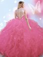 Customized Tulle High-neck Sleeveless Zipper Beading Quinceanera Gown in Rose Pink