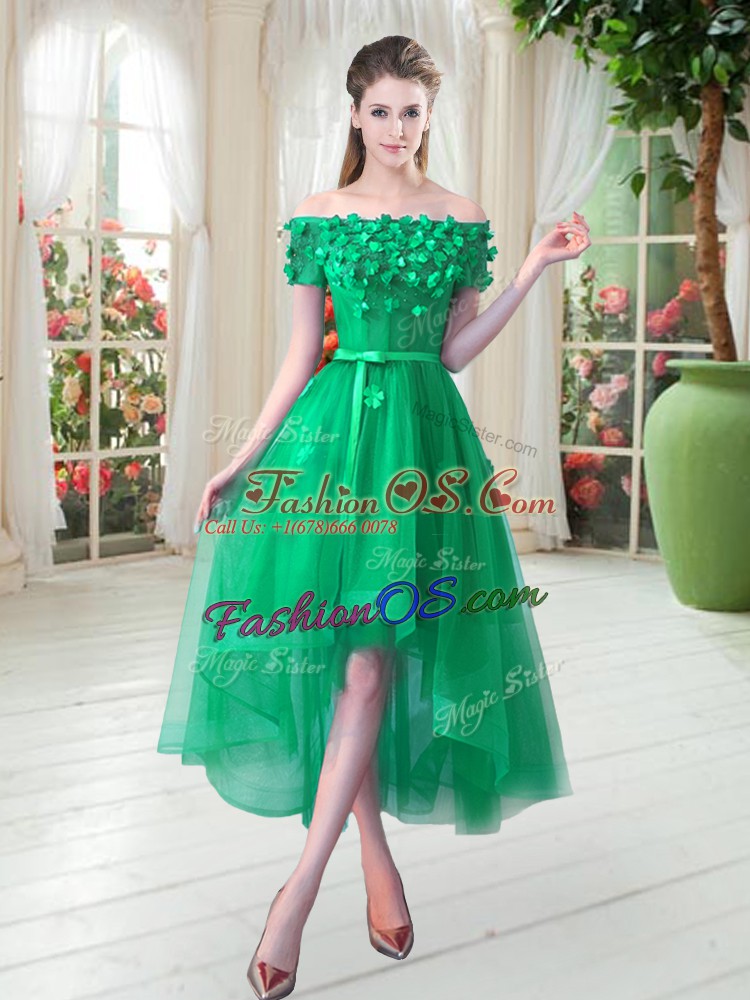 Customized Tulle Short Sleeves High Low Homecoming Dress and Appliques