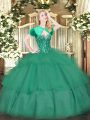 Customized Turquoise Lace Up Ball Gown Prom Dress Beading and Ruffled Layers Sleeveless Floor Length
