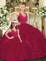 Customized V-neck Sleeveless Tulle Quinceanera Gowns Ruching Lace Up
