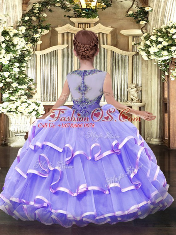 Customized Watermelon Red Organza Zipper Scoop Sleeveless Floor Length Girls Pageant Dresses Beading and Ruffled Layers