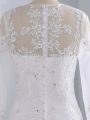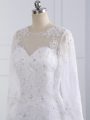 Home >  Wedding Dresses >  Latest Wedding Dresses > Customized White Tulle Zipper Scoop Long Sleeves Wedding Gown Brush Train Beading and Lace and Appliques