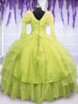 Home >  Quinceanera Dresses >  Unique Quinceanera Dresses > Customized Yellow Green Lace Up V-neck Beading and Embroidery and Ruffles Quince Ball Gowns Organza Sleeveless