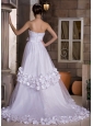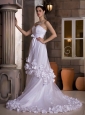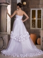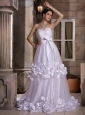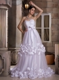 Cute A-line Wedding Dress Sweetheart Hand Made Flowers and Bow Sweep Train Taffeta and Tulle