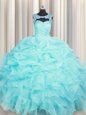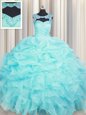 Cute Aqua Blue Sweet 16 Dress Military Ball and Sweet 16 and Quinceanera and For with Beading and Pick Ups Scoop Sleeveless Lace Up