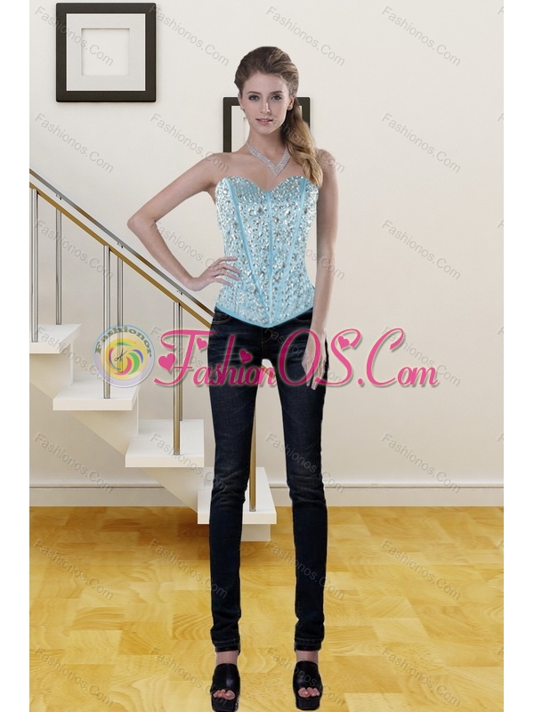 Cute Baby Blue Sweetheart Corset with Ruffles and Beading
