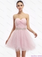 Cute Baby Pink Sweetheart Ruching Short Prom Dresses for 2015