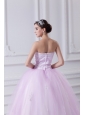 Home >  Quinceanera Dresses >  Luxurious Quinceanera Dresses > Cute Ball Gown Strapless Beading and Appliques Tulle Baby Pink Quinceanera Dress