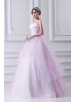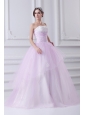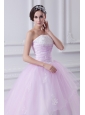 Cute Ball Gown Strapless Beading and Appliques Tulle Baby Pink Quinceanera Dress