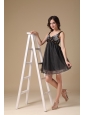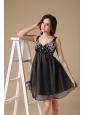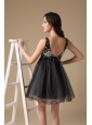 Cute Black A-line Straps Organza Beading Evening Dress Mini-length