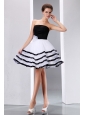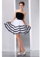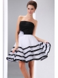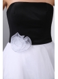 Cute Black and White Cocktail Dress A-line Strapless Hand Made Flower Knee-length Taffeta and Organza