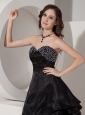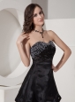 Cute Black Little Black Dress A-Line / Princess Sweetheart Organza Beading Mini-length