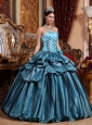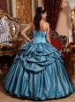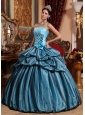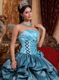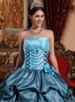 Cute Blue Quinceanera Dress Strapless Taffeta Hand Made Flower Ball Gown