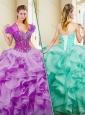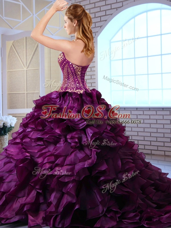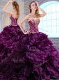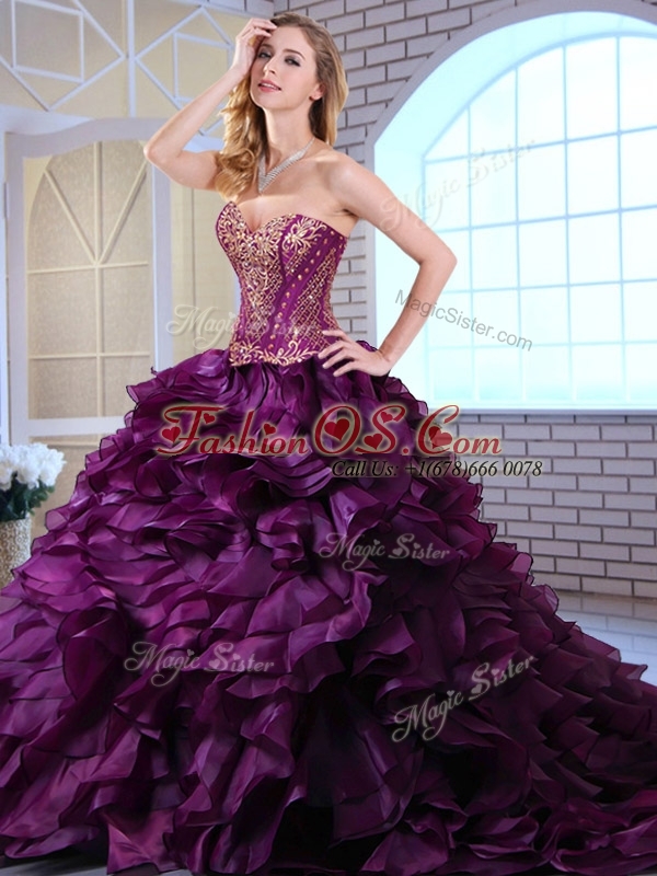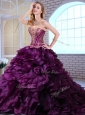 Cute Brush Train Dark Purple Sweet 16 Quinceanera Dresses with Ruffles and Appliques