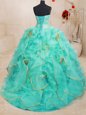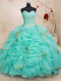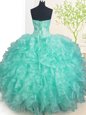 Cute Floor Length Lace Up Ball Gown Prom Dress Turquoise and In for Military Ball and Sweet 16 and Quinceanera with Beading and Ruffles