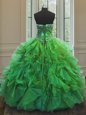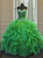 Cute Floor Length Sweet 16 Dress Organza and Sequined Sleeveless Beading and Ruffles