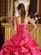 Cute Hot Pink Quinceanera Dress Strapless Pick-ups Taffeta Ball Gown