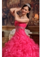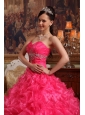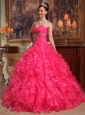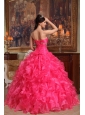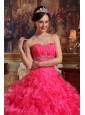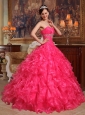 Cute Hot Pink Quinceanera Dress Sweetheart Organza Beading Ball Gown