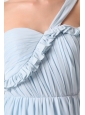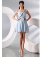 Cute Light Blue One Shoulder Ruching Mini-length Prom Cocktail Dress