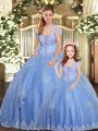 Home >  Quinceanera Dresses >  Princesita with Quinceanera Dresses > Cute Light Blue Sleeveless Beading and Appliques Floor Length Quince Ball Gowns