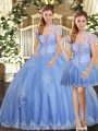 Cute Light Blue Sleeveless Beading and Appliques Floor Length Sweet 16 Dress