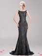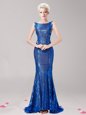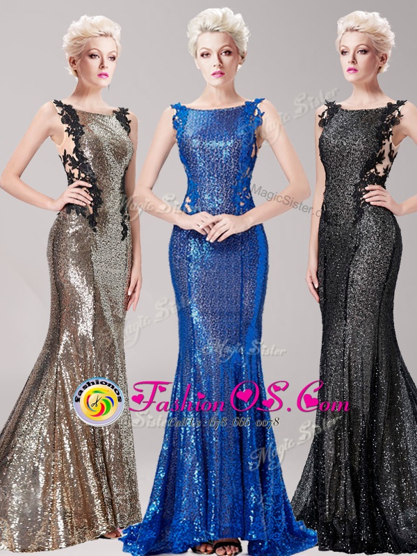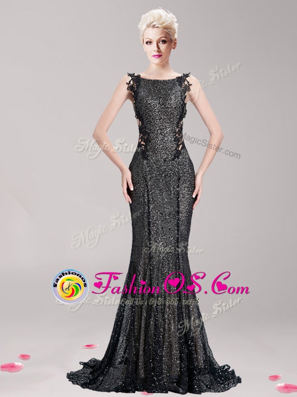 Cute Mermaid Square Sleeveless Brush Train Clasp Handle With Train Appliques and Sequins Prom Dress