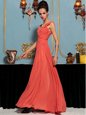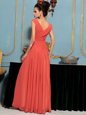 Cute One Shoulder Sleeveless Evening Dress Floor Length Ruffles Red Chiffon