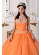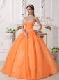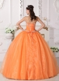Home >  Quinceanera Dresses >  Discount Quinceanera Dresses > Cute Orange Quinceanera Dress Strapless Taffeta and Organza Appliques Ball Gown