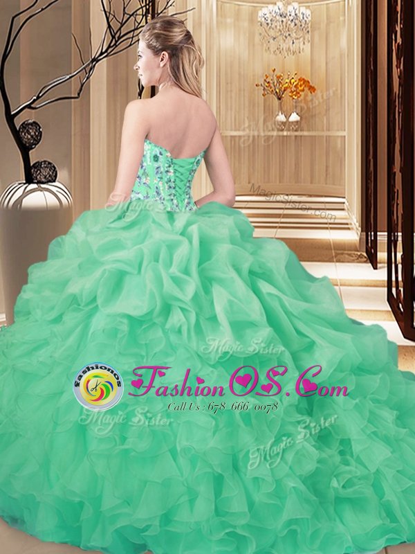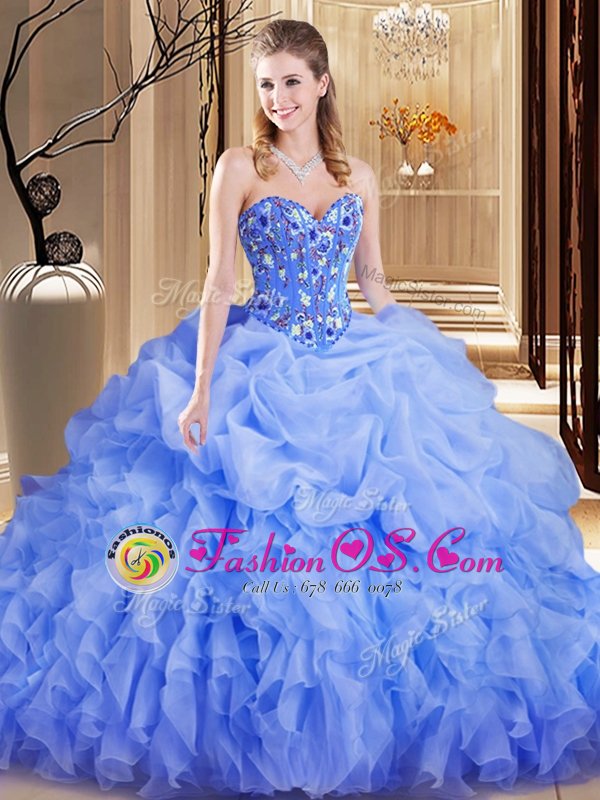 Cute Pick Ups Brush Train Ball Gowns Sweet 16 Quinceanera Dress Lavender Sweetheart Organza Sleeveless Lace Up