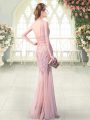 Cute Pink Sleeveless Floor Length Sequins Backless Prom Dress