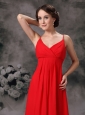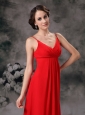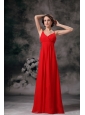 Cute Red Empire Straps Cheap Bridesmaid Dress Chiffon Floor-length