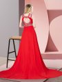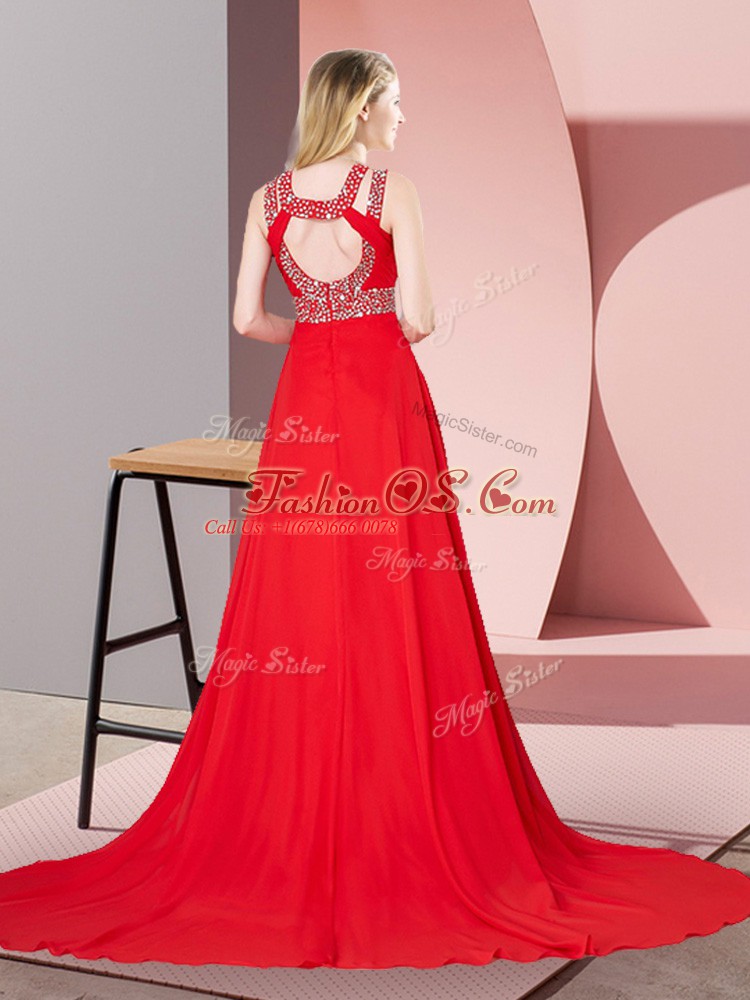 Cute Red Scoop Backless Beading Celebrity Dress Brush Train Sleeveless