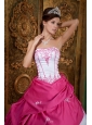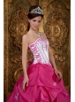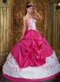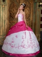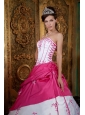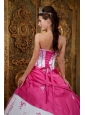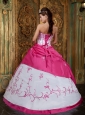 Cute Rose Pink and White Quinceanera Dress Strapless Embroidery Satin Ball Gown