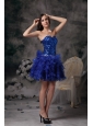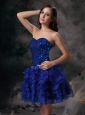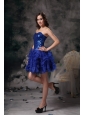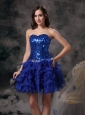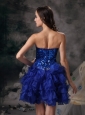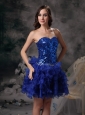 Cute Royal Blue Evening Dress A-line Sweetheart Organza Beading Mini-length
