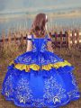 Cute Satin Off The Shoulder Sleeveless Lace Up Beading and Embroidery Child Pageant Dress in Aqua Blue
