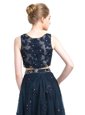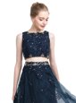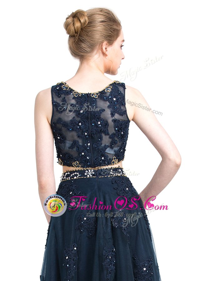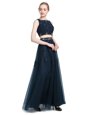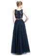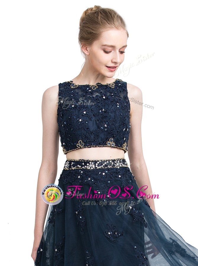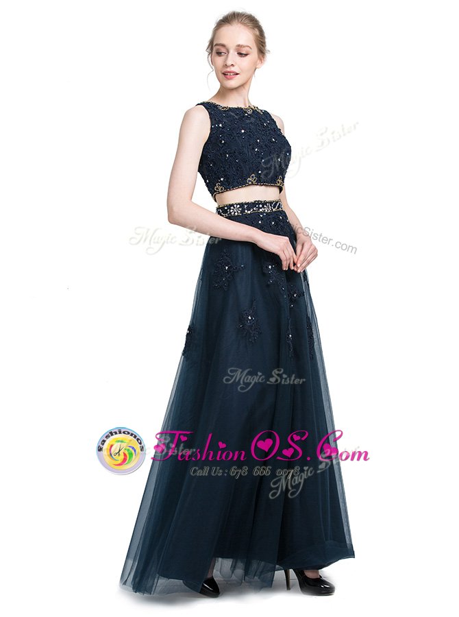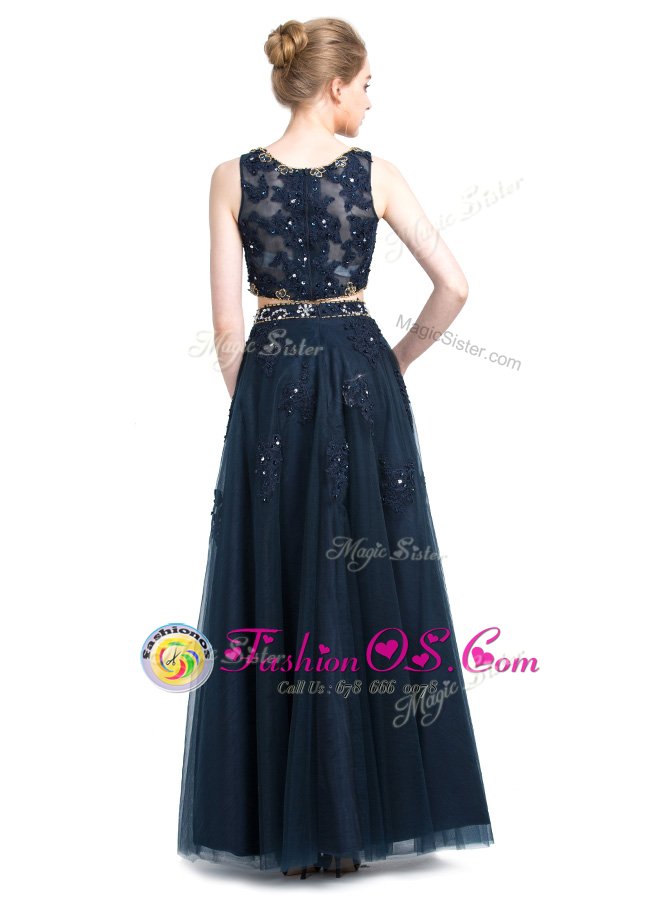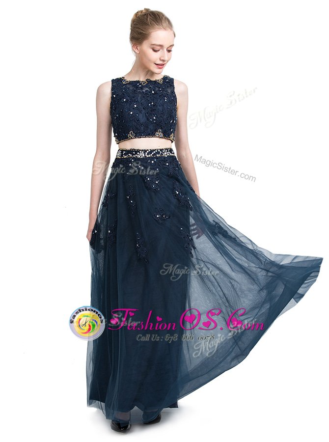 Cute Scoop Floor Length Empire Sleeveless Navy Blue Prom Evening Gown Zipper