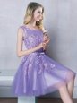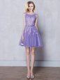 Cute Scoop Lavender Sleeveless Tulle Zipper Bridesmaid Gown for Prom and Party and Wedding Party