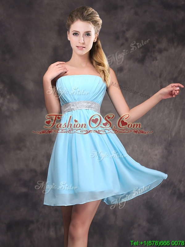 Cute Sequined Decorated Waist Short Prom Dress with Strapless