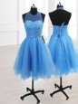 Home >  Prom Dresses >  Perfect Prom Dresses > Cute Sleeveless Knee Length Sequins Lace Up Prom Dresses with Baby Blue