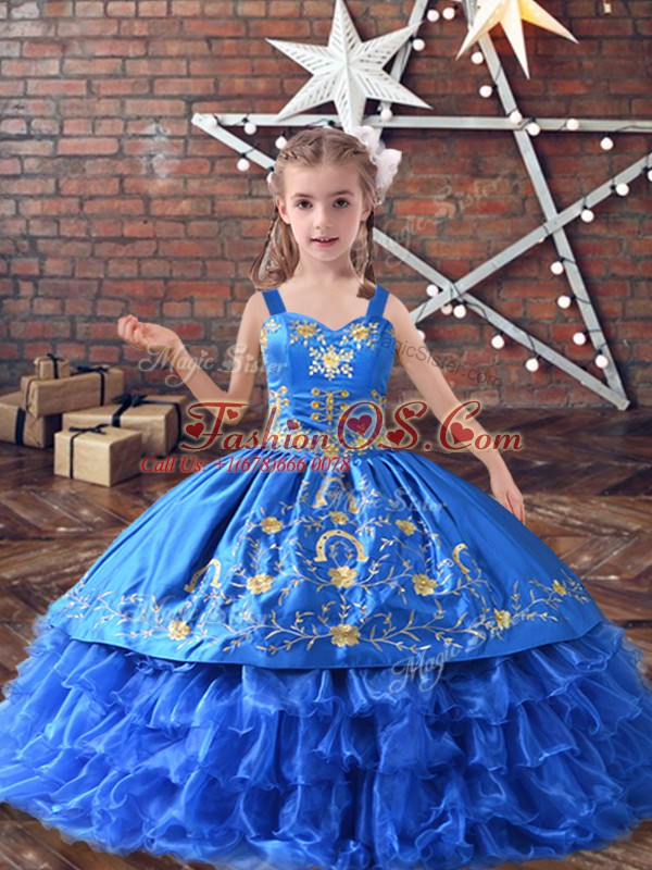 Cute Sleeveless Lace Up Floor Length Embroidery and Ruffled Layers Child Pageant Dress