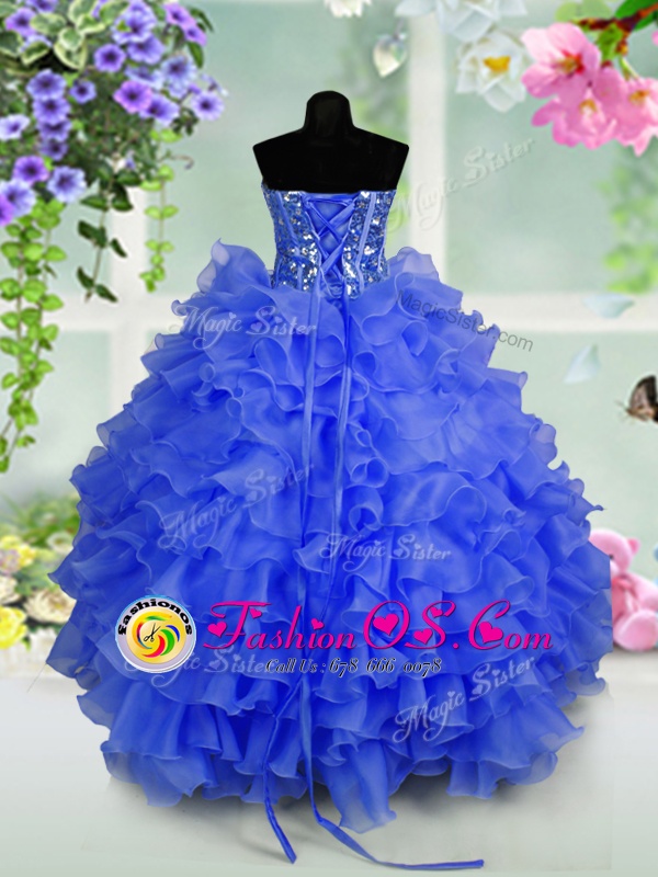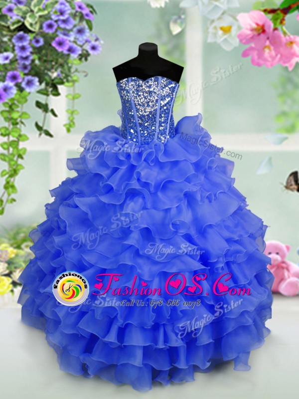 Cute Sleeveless Ruffled Layers and Sequins Lace Up Little Girl Pageant Gowns