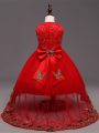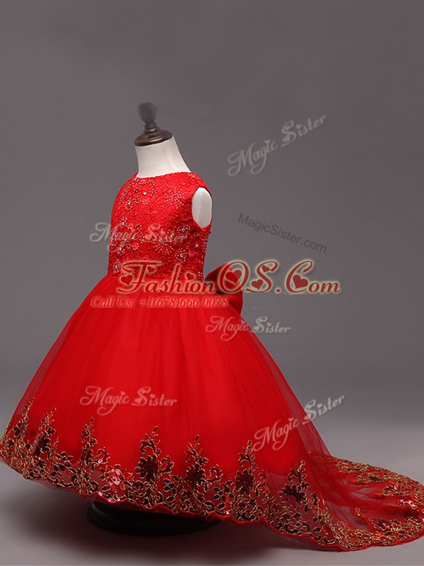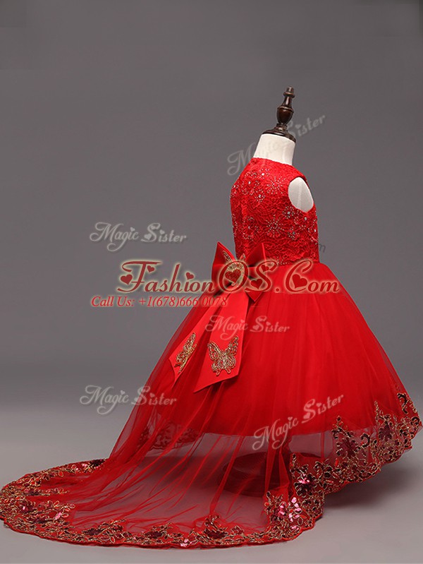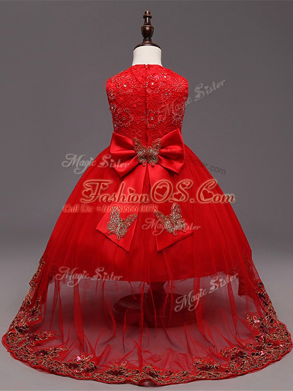 Cute Sleeveless Zipper High Low Lace and Bowknot Kids Pageant Dress