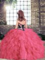 Cute Straps Sleeveless Pageant Gowns For Girls Floor Length Embroidery and Ruffles Blue Tulle