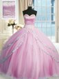 Cute Sweetheart Sleeveless Tulle 15 Quinceanera Dress Beading and Appliques Court Train Lace Up
